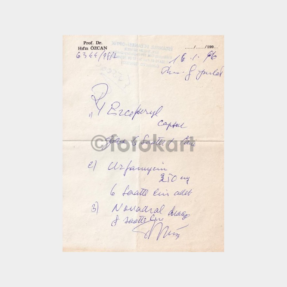 1986 Prof. Dr. Hıfzı Özcan Reçetesi