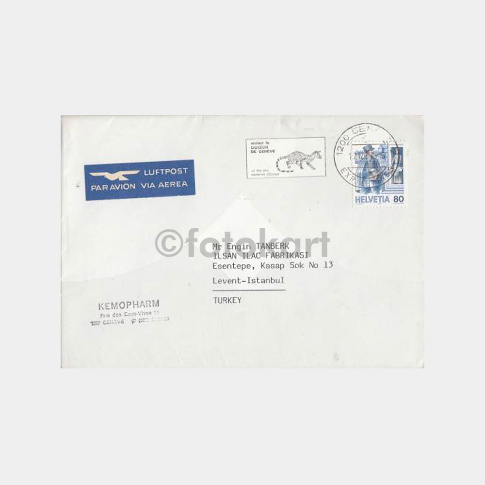 Arkası yazılı flam damgalı zarfı Cenevre müzesini ziyaret ediniz