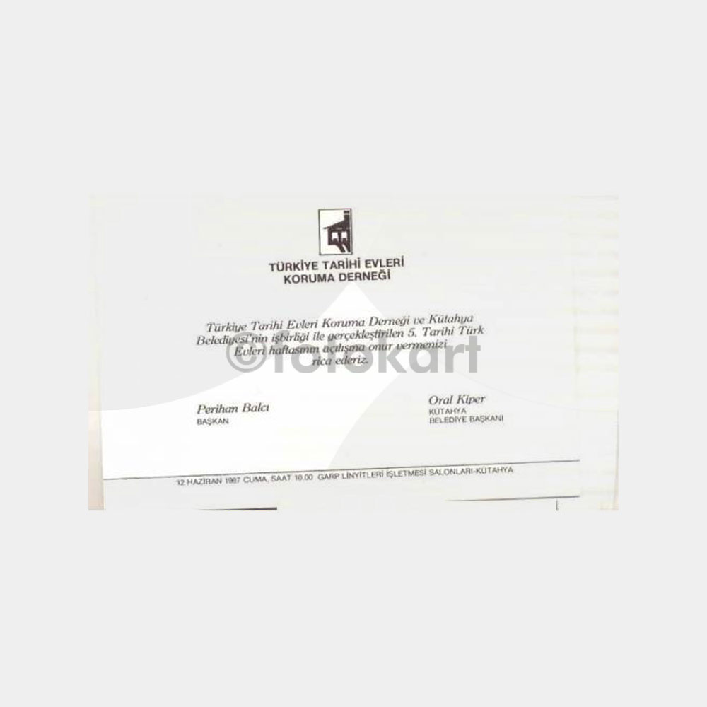 1987 Tarihi Türk Evleri Haftası Davetiye