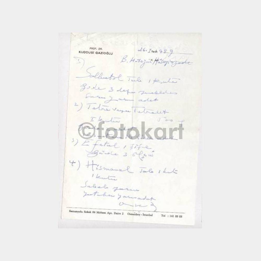 1989 Prof. Dr. Kuddusi Gazioğlu Reçetesi