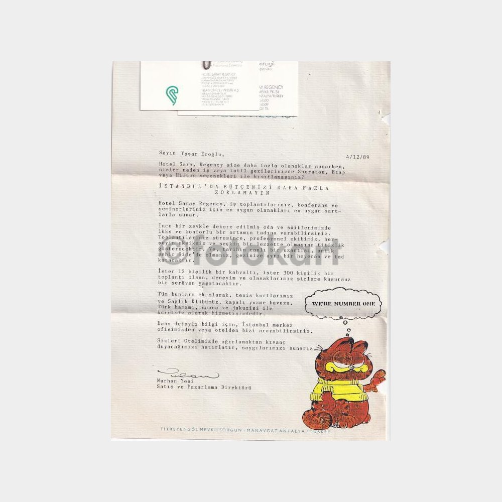 “1989 Sorgun Antalya Otel Saray Regency Antetli Yazısı” için yorum yapan ilk kişi siz olun