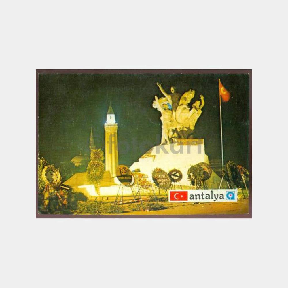 1990 Antalya Heykel Gece Görünüş Kartpostal