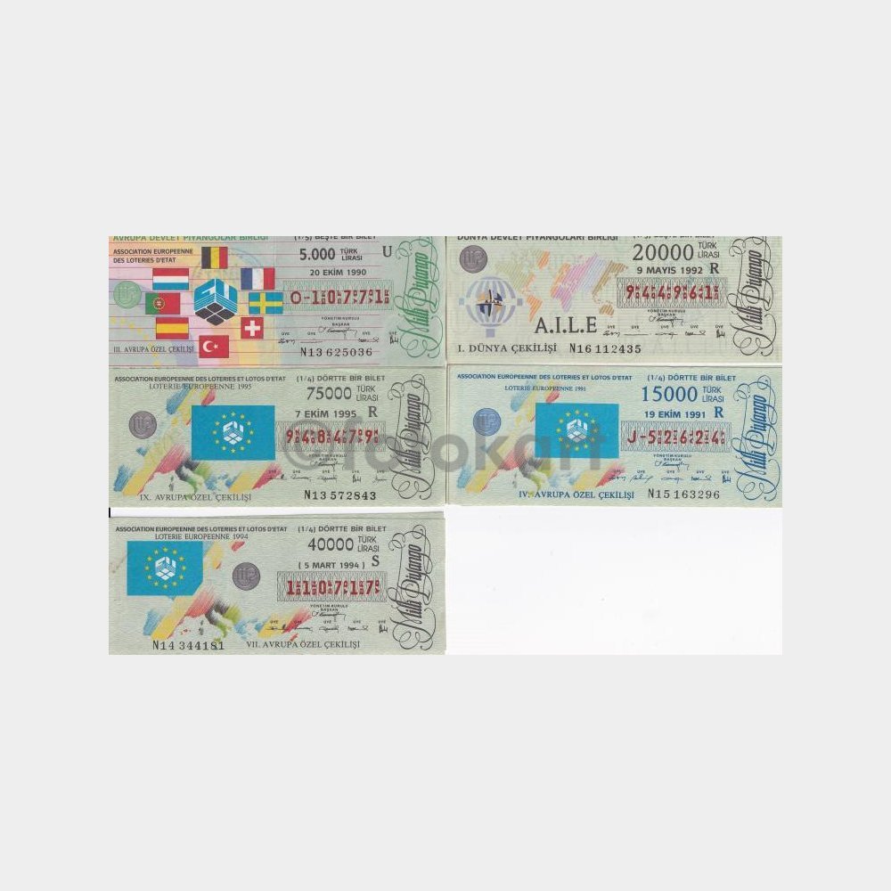 “1990 Avrupa Devlet Piyango Birliği Özel Çekilişi Bilet (5 Adet Farklı, Top. 12 Adet)” için yorum yapan ilk kişi siz olun