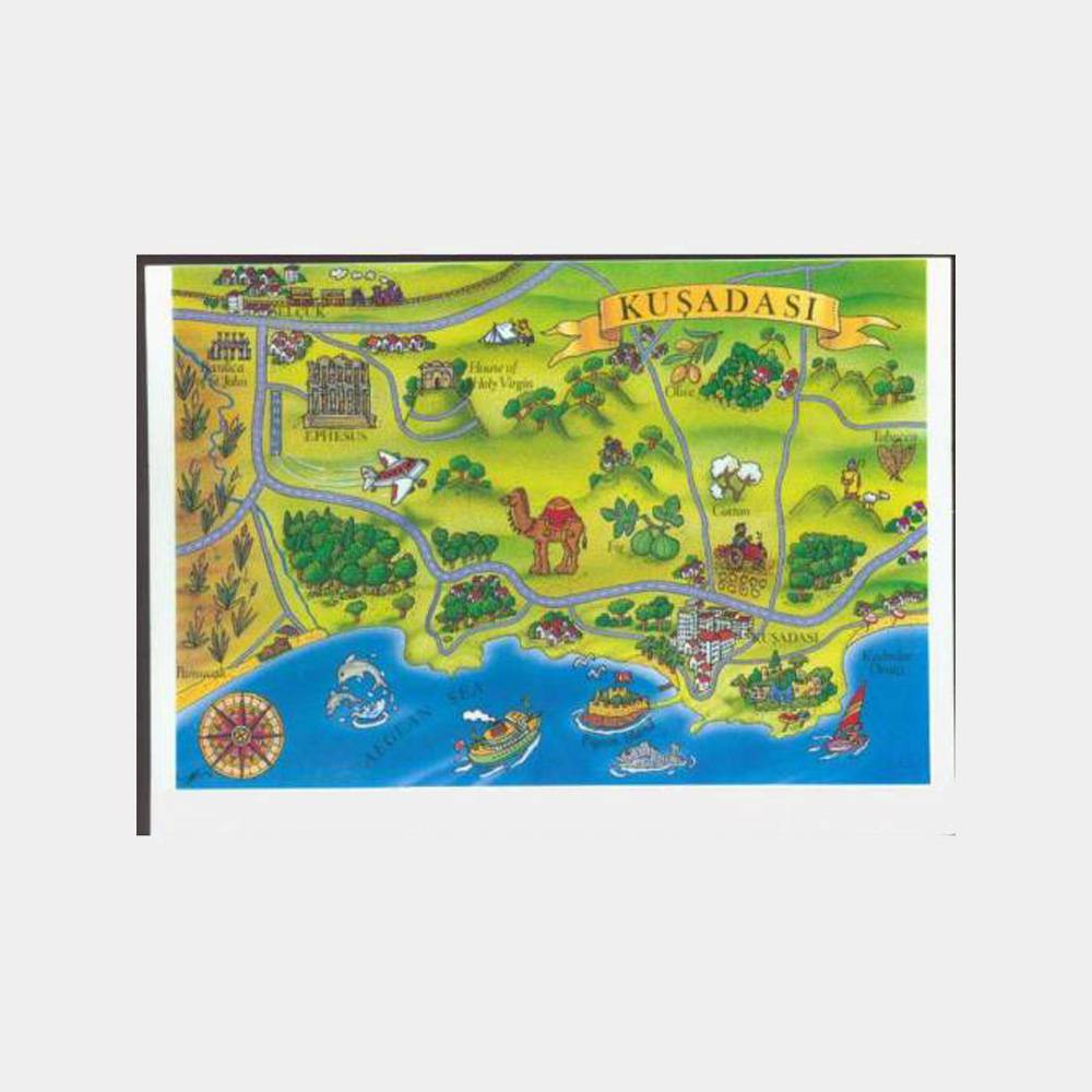 1990 Kuşadası Haritalı Görünüş Kartpostal