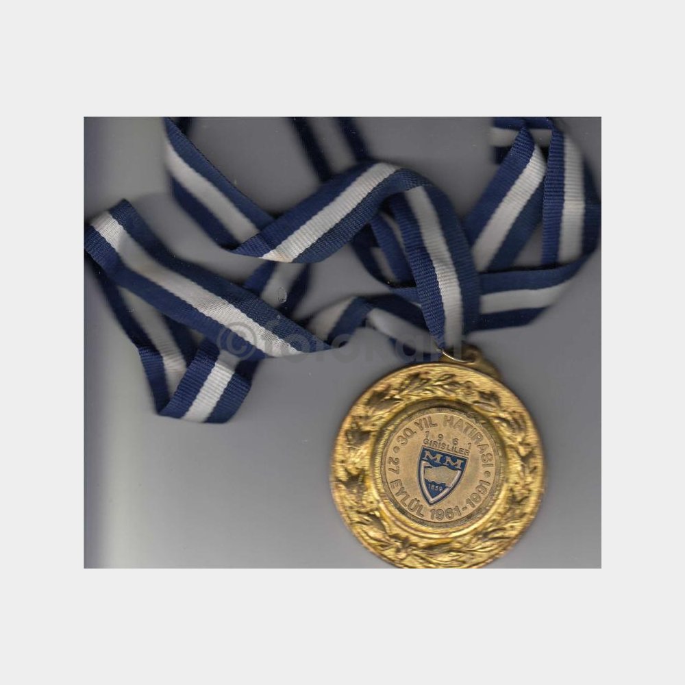Çok temiz. 1961 yılı girişlilerin 30 yıl hatıra madalyası, arka yüzünde isim soyadı var. 6,5 cm çapında, kurdelası mevcut.