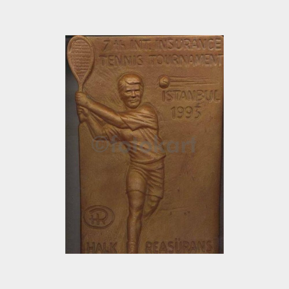 22×32 cm kabartma plaket. 7. Sigorta Tenis Turnuvası anısına büyük tablet Halk Reasürans. İstanbul 1993. Arkasında sünger mevcut.