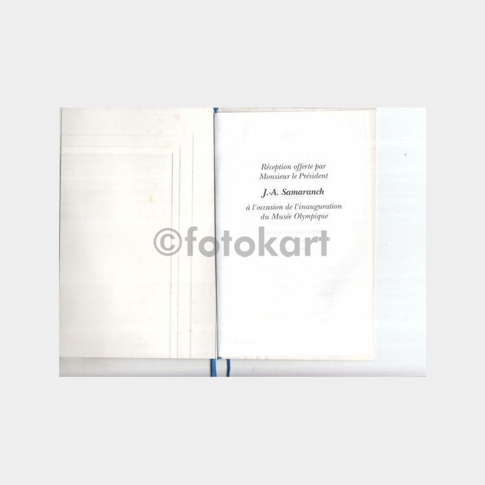 9,5 x 15,5 cm ebadında, koleksiyon amaçlı eski davetiye kartı. İçi Fransızca baskılı Olimpiyat Komitesi Başkanı Samaranch baskılı.