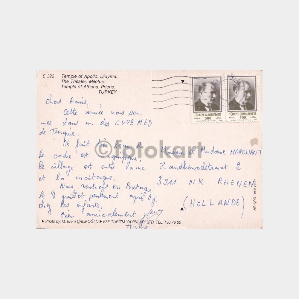 Arkası pullu damgalı.
