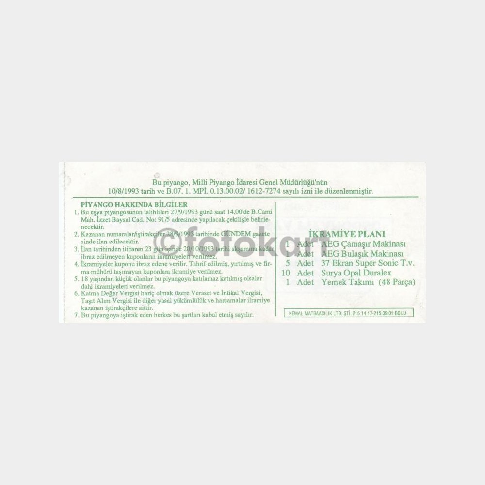 “1993 Seçkin Eşya Piyangosu Bilet” için yorum yapan ilk kişi siz olun