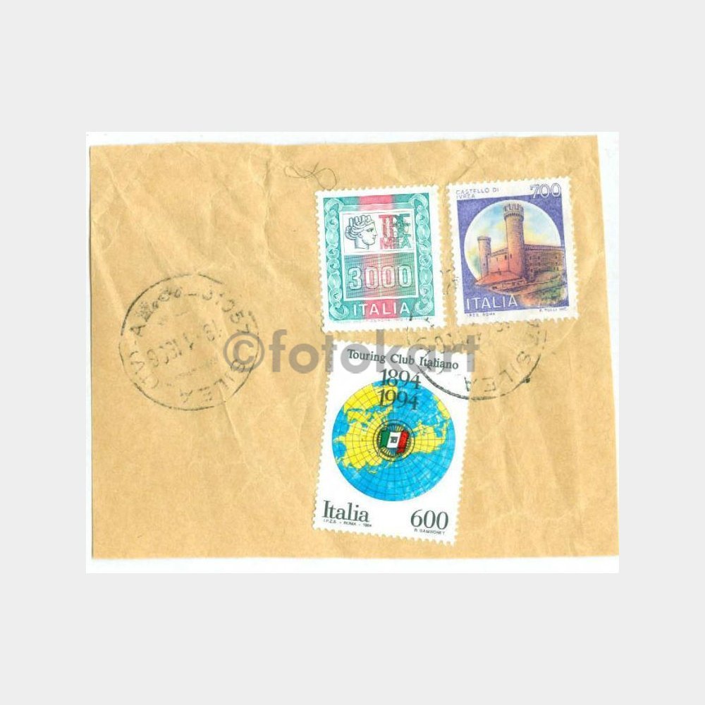 İtalya 3000 liret pul + Turing Kulübü damgalı fragman parçası.