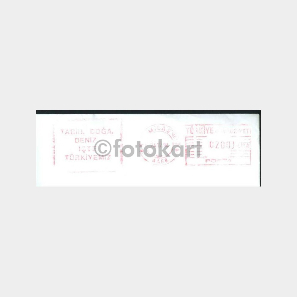 Zarfın üzerinde 24.12.1994 Milas posta şubesi, tarih, doğa, deniz, işte Türkiye’miz, flam damgası.