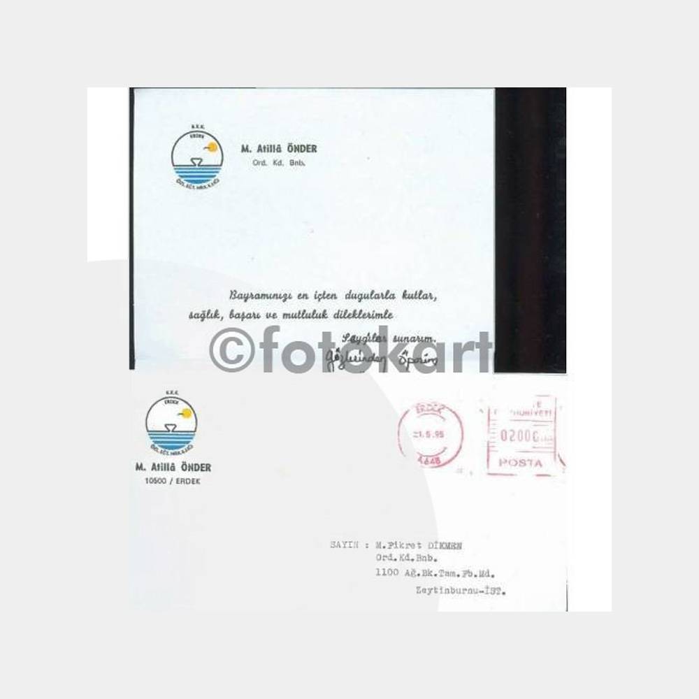 1995 Erdek KKK Eğitim Komutanlığı Antetli Tebrik Zarf