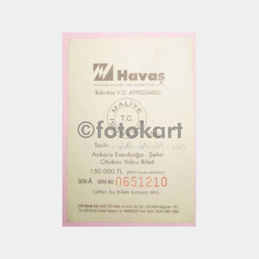 1995 Havaş Ankara Esenboğa Otobüs Bileti