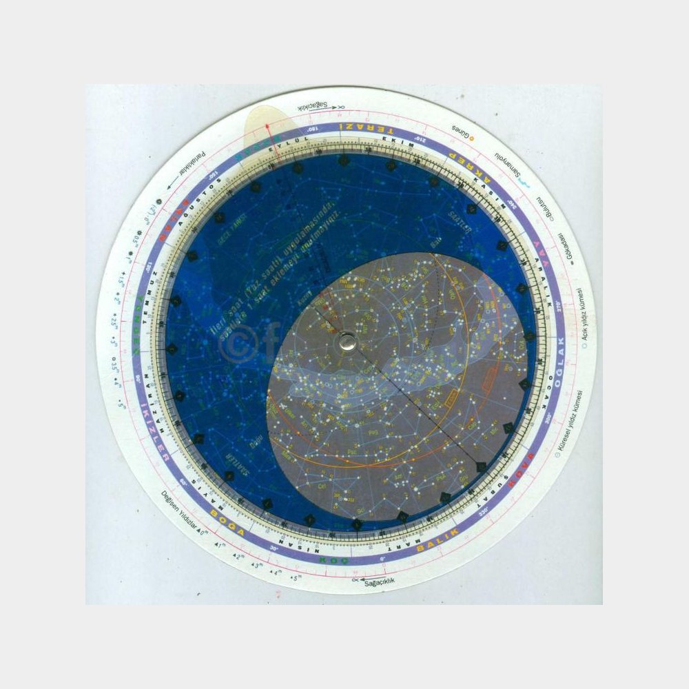 Çok temiz çapı 20,5 cm. olan bir karton üzerinde plastik kabı dönebilen şekilde. Arkasında “Bu gökatlası Ege Üniversitesi Rasathanesi tarafından gerçekleşmiştir” yazılı.