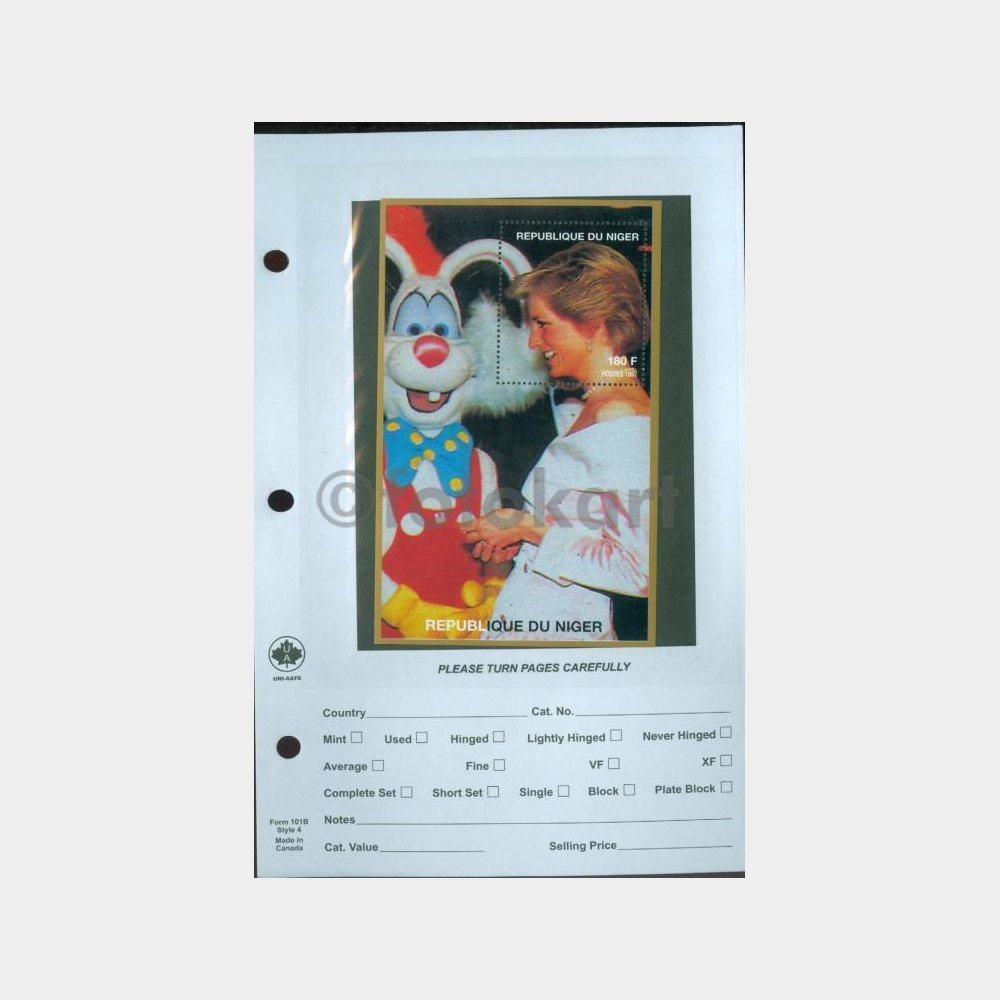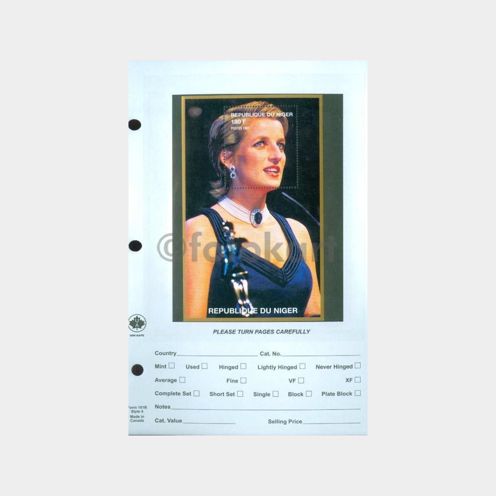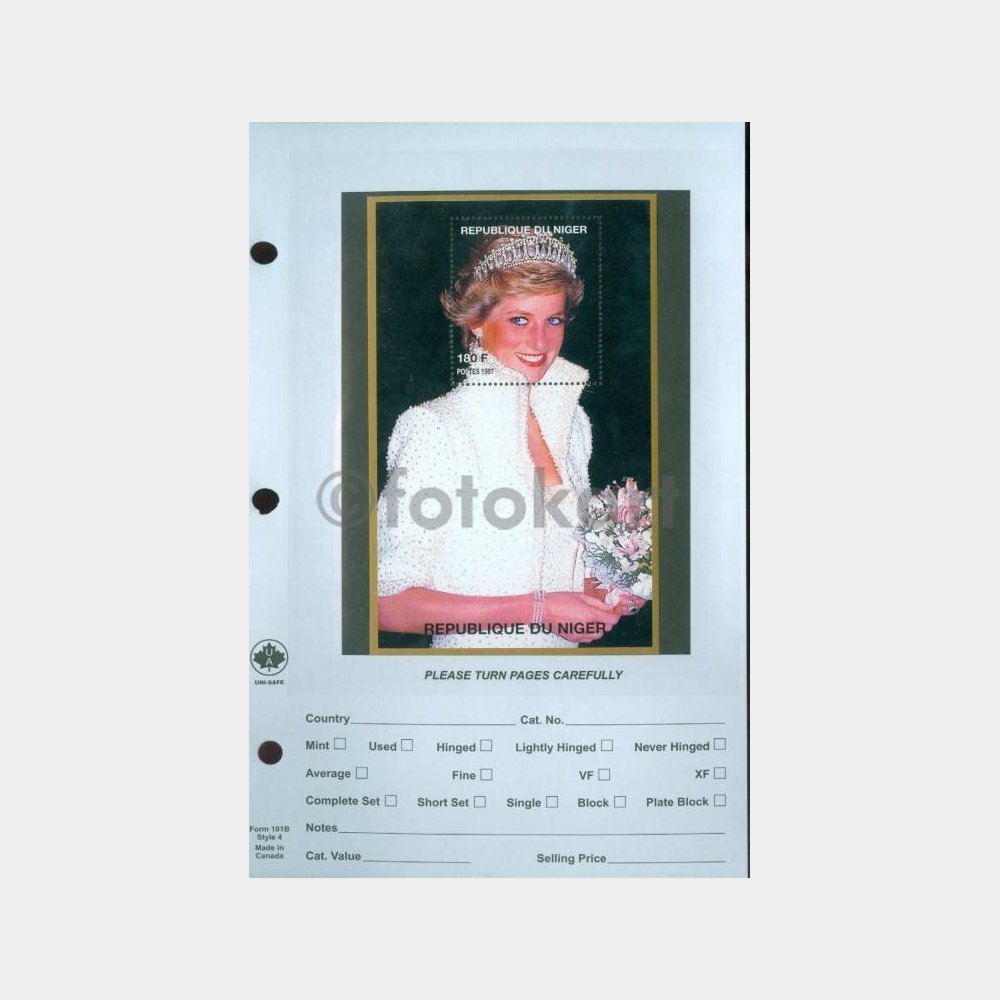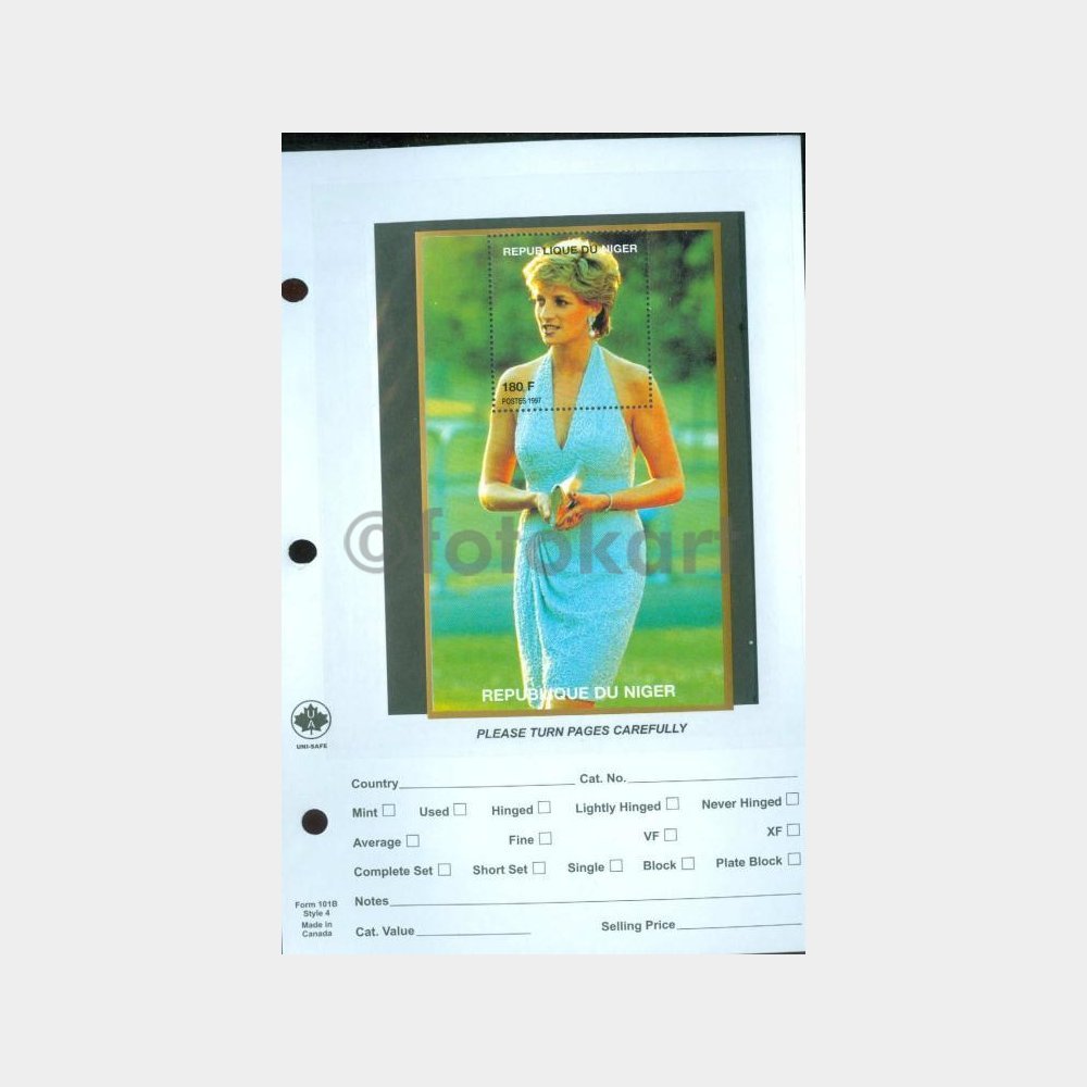 Nijer Cumhuriyeti’nin bastığı blok şeklinde 4 adet Diana pulu. 8 x 13 cm blok üzerinde tırtıllı bölüm 4,5 x 4,5 cm ebadında – özel bloknot sayfasında.