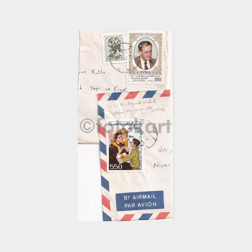 2000 Suriye Zarf Parçası – 2 Fragman Damgalı Pul