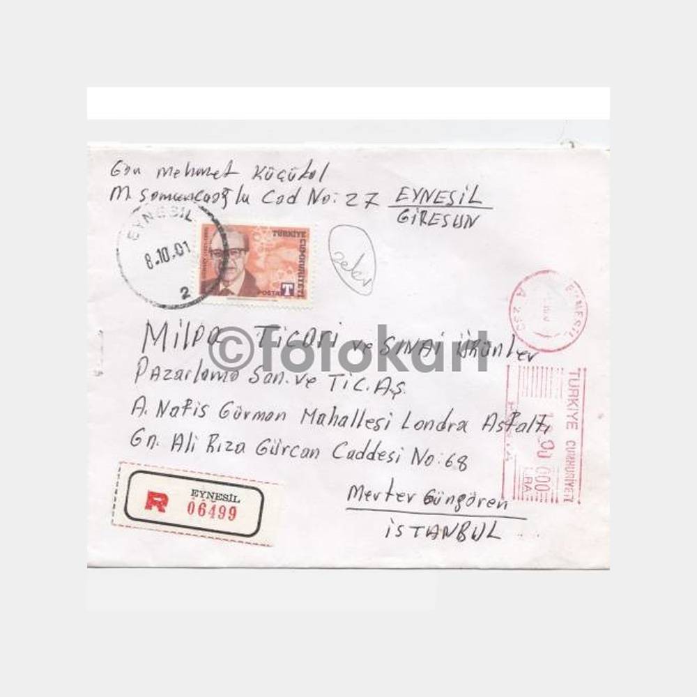 2001 Eynesil Giresun Posta Damgalı Zarf