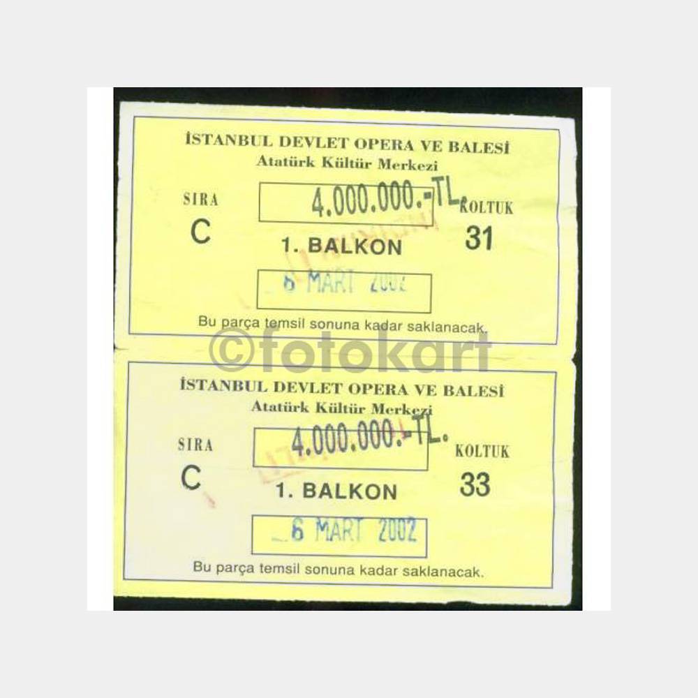 İstanbul Devlet Opera Balesi – Taksim Atatürk Kültür Merkezi 2 adet bileti – Koleksiyon amaçlıdır.