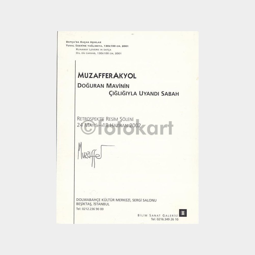 8 x 12 cm ebadında, koleksiyon amaçlı. Ressam Muzaffer Akyol sergisi imzalı davetiyesi.