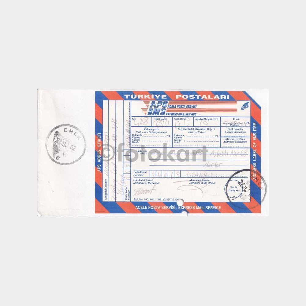 2002 PTT Acele Posta Servisi Damgalı Zarf, Ankara Emek Şubesi