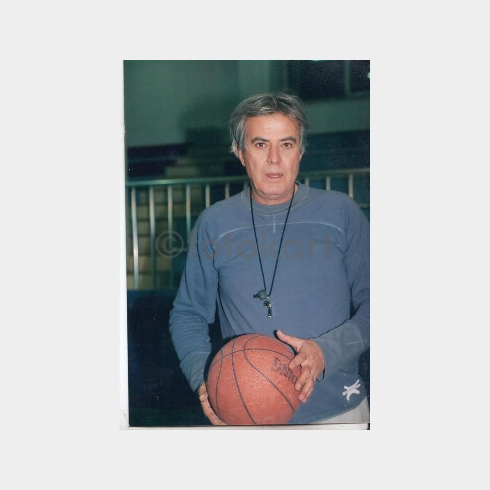 10 x 15 cm ebadında, arkası yazısız belgesel fotoğraf. Sanatçının bir basketbol hocasını canlandırdığı ünlü televizyon dizisi “Koçum Benim” (2002–2003) setinden bir görüntü.