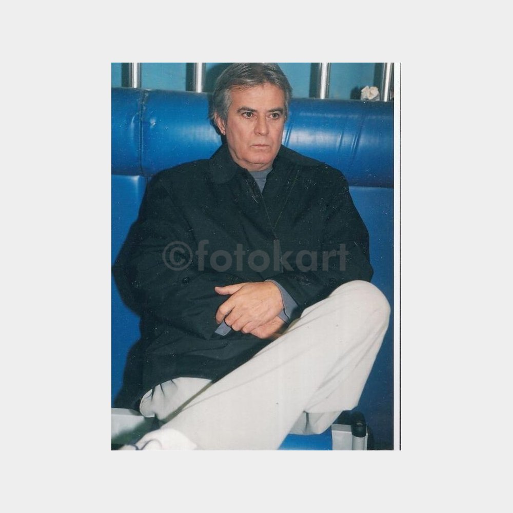 10 x 15 cm ebadında, arkası yazısız belgesel fotoğraf. Sanatçının bir basketbol hocasını canlandırdığı ünlü televizyon dizisi “Koçum Benim” (2002–2003) setinden bir görüntü.