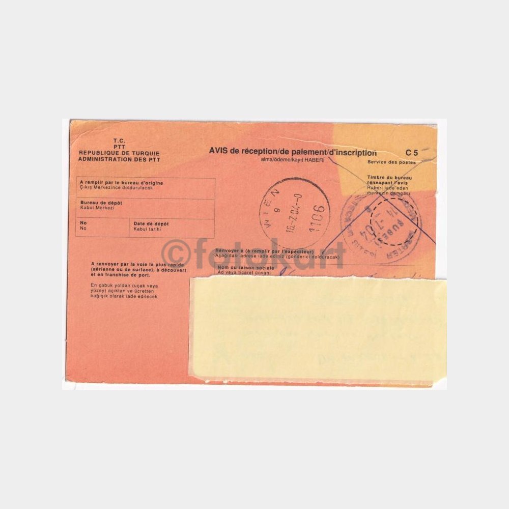 2004 PTT Yurtdışı Gönderi Alındı Kartı