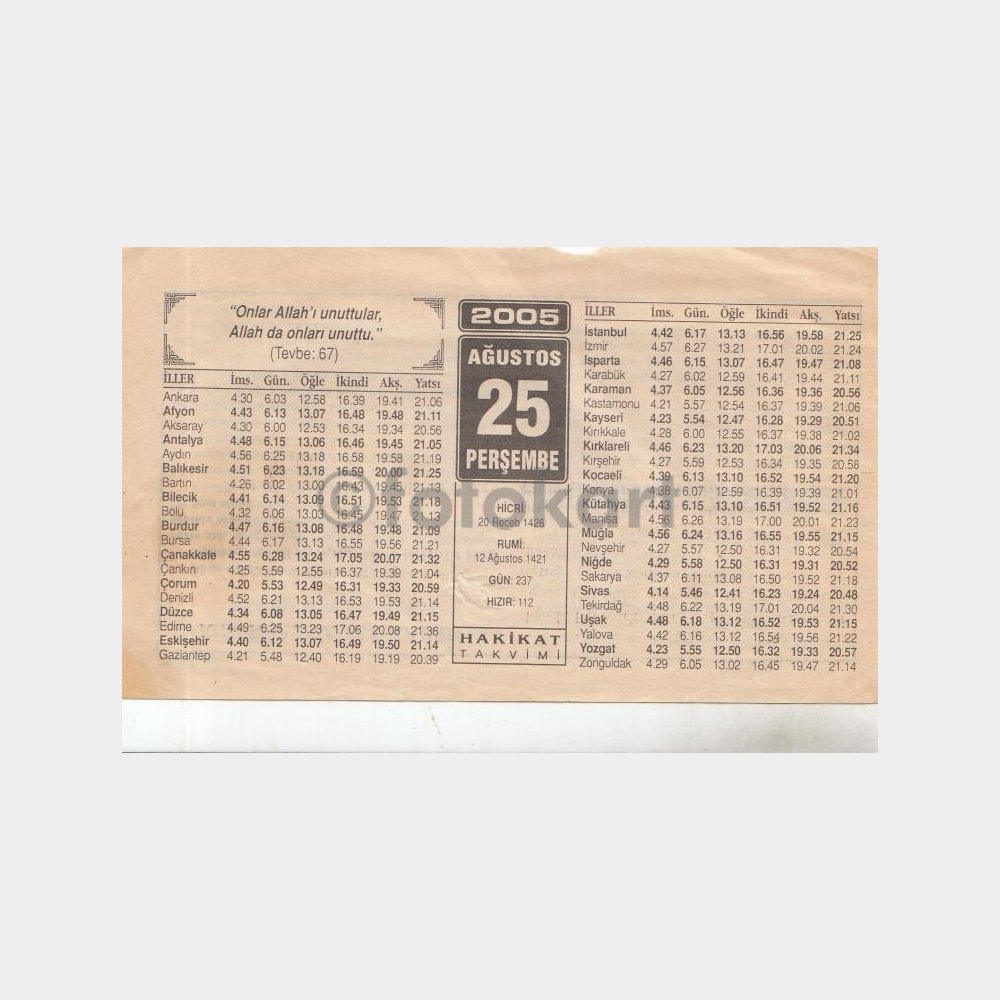 “2005 – 25 Ağustos Takvim Yaprağı” için yorum yapan ilk kişi siz olun