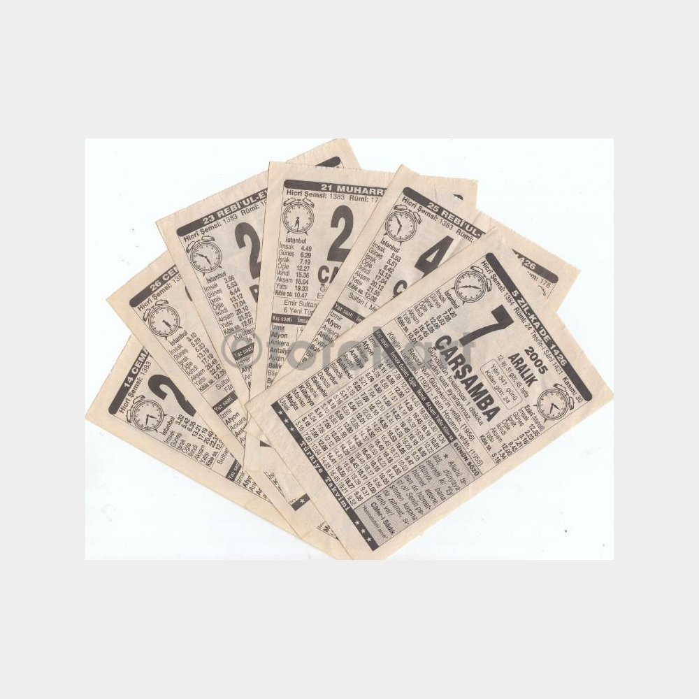 8 x 12 cm ebadında, koleksiyon amaçlı eski takvim yaprağı. 6 adet muhtelif tarihlerde.