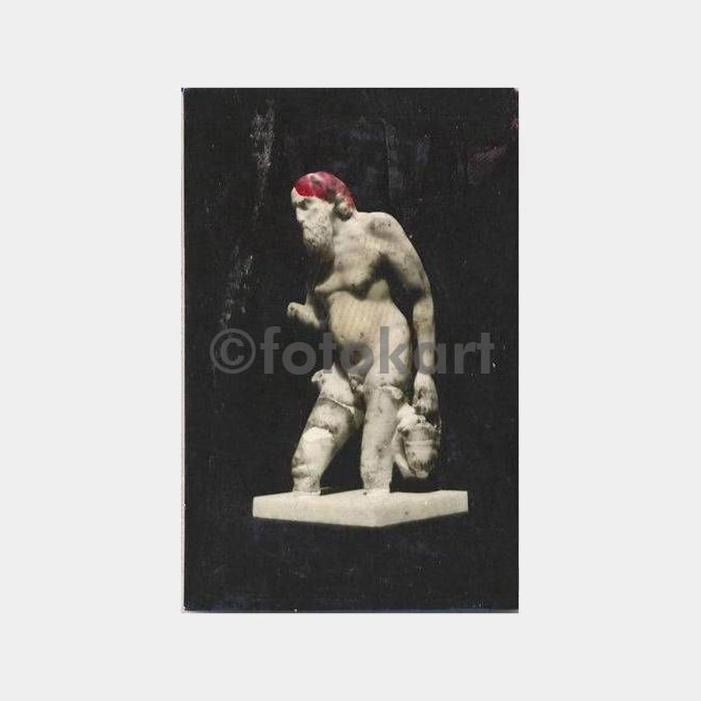 Afyon müzesi mermer Diyojen heykeli kartı, arkasında afyon müzesini ve eski eserleri sevenler derneği yuvarlak mühürü var. Arkeoloji müzesi