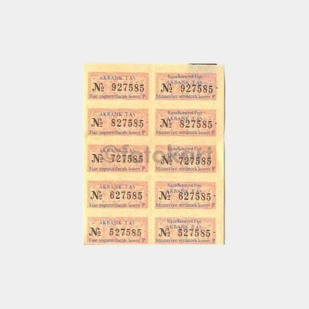 Akbank -Numaralı 10 Adet- Kasa Kontrol Fişi