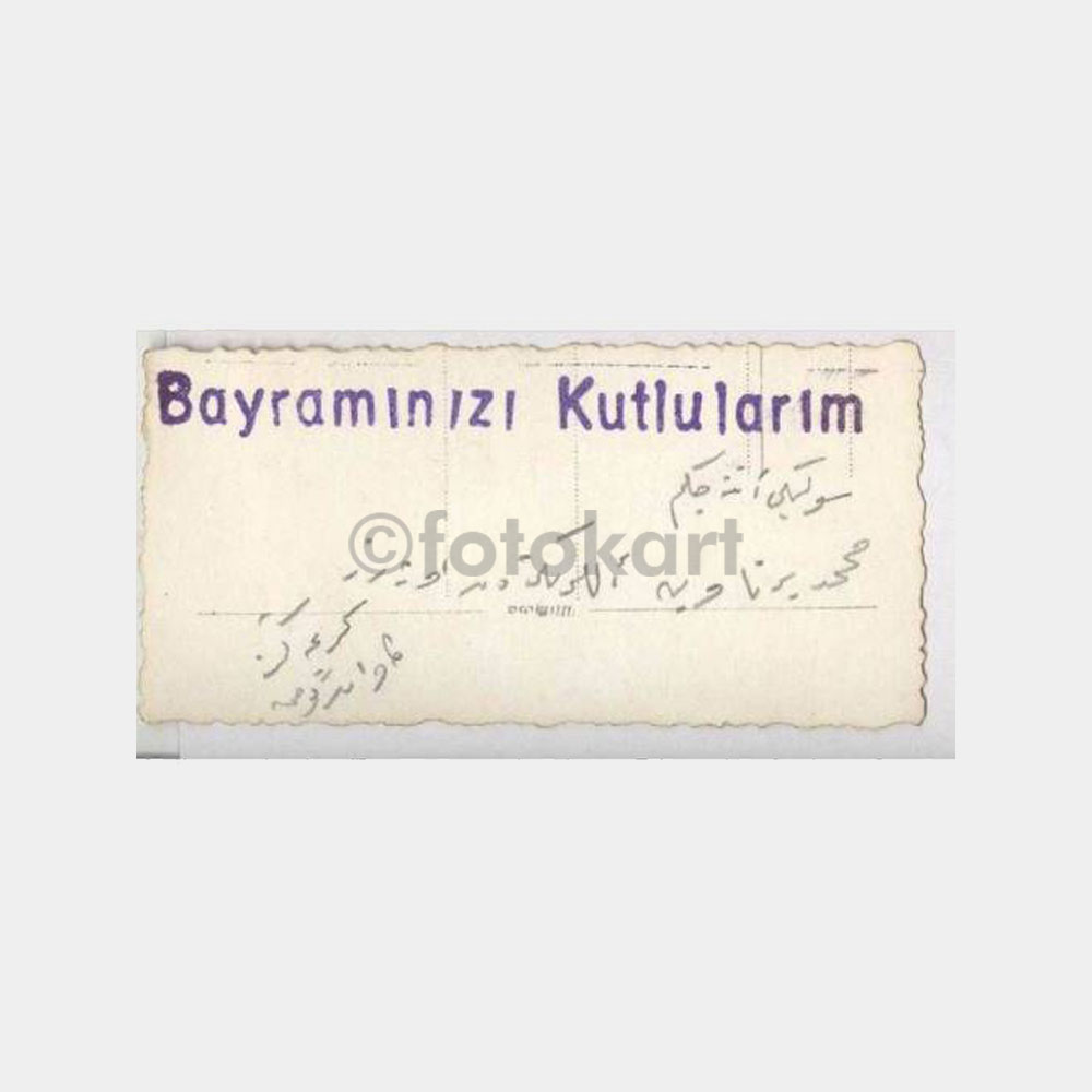 4 x 8,5 cm ebadında foto, arkası baskılı ve yazılı