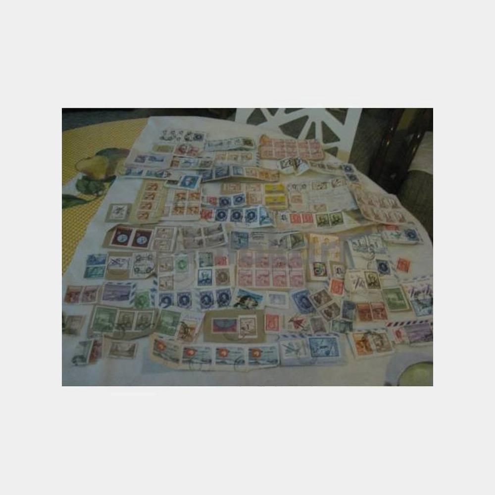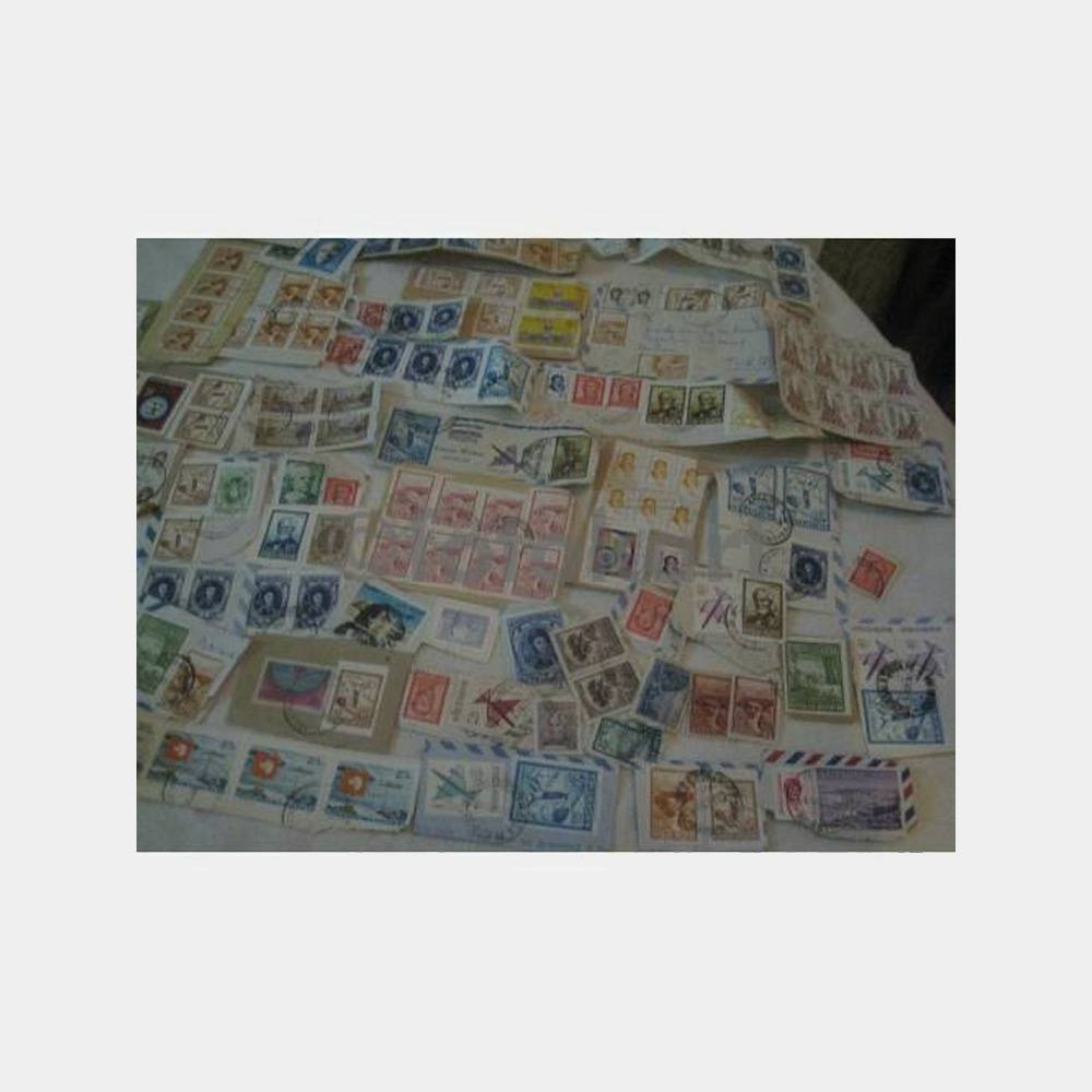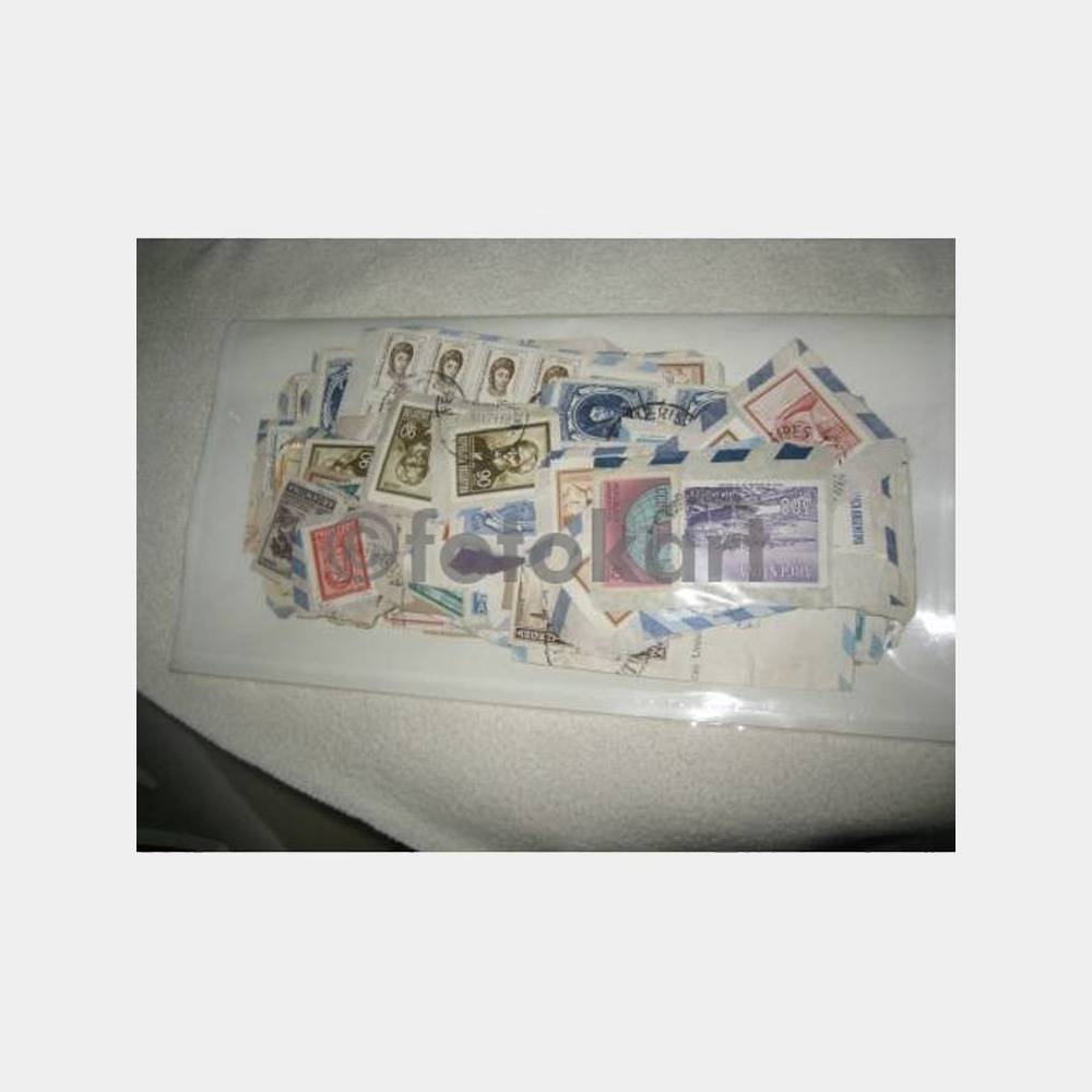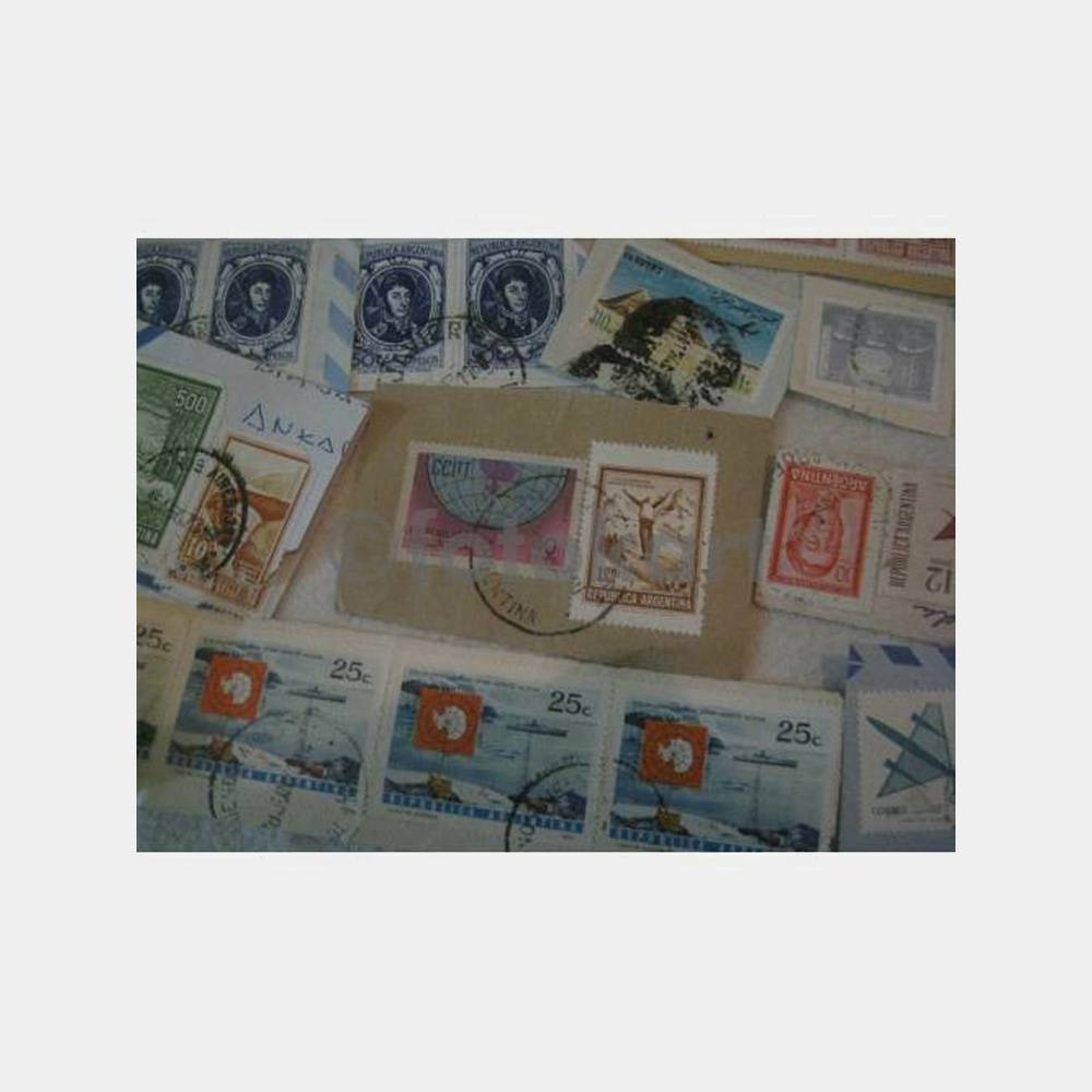 Zarftan kesilmiş kağıtta yapışık durumda Arjantin pulları çeşit çok bazıları bir adetten fazla damgalı posta pulları 200 adet