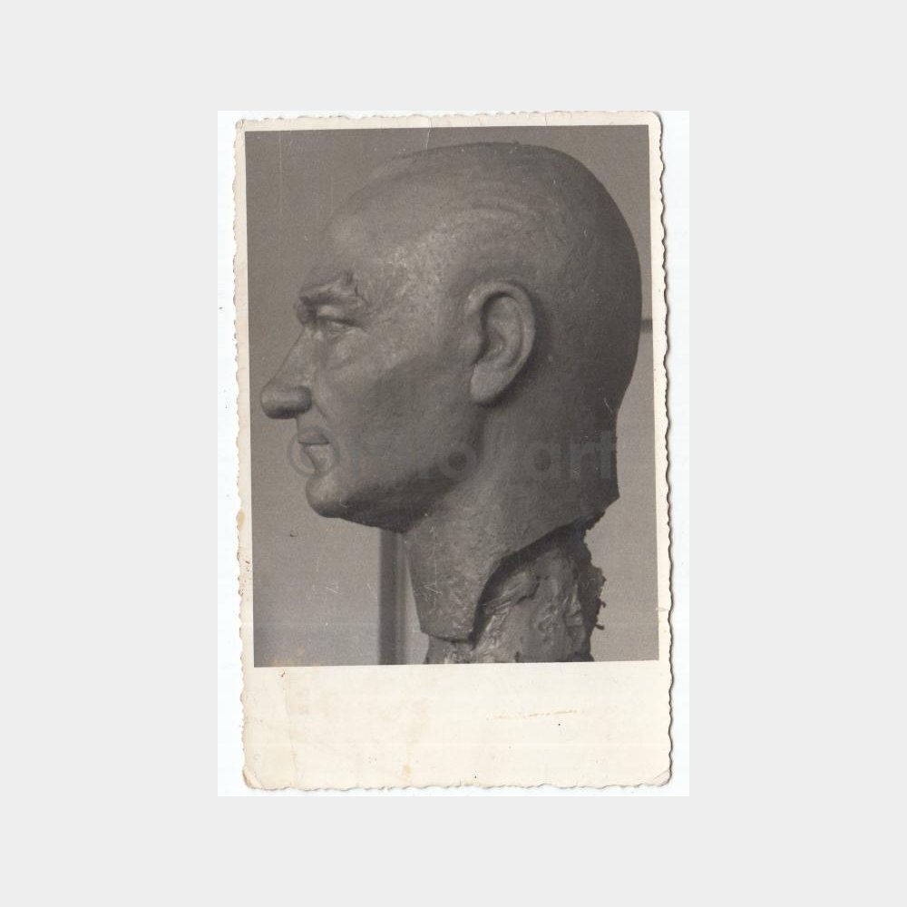 14 x 9 cm ebadında, arkası yazısız, belgesel fotoğraf, ünlü bir heykeltraşın elinden çıkma büste ait fotoğraf.