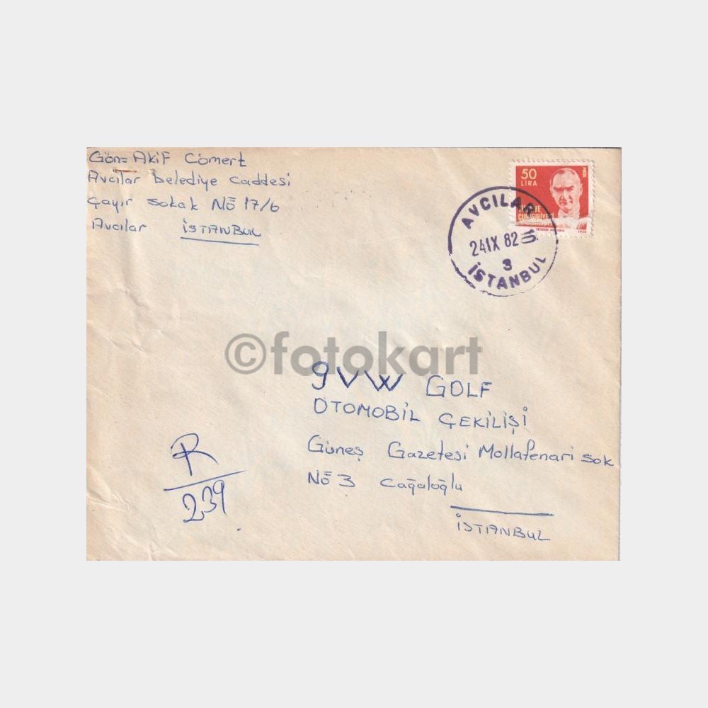 Avcılar-İstanbul, Posta Tarihi-Şehir Damgalı Zarf