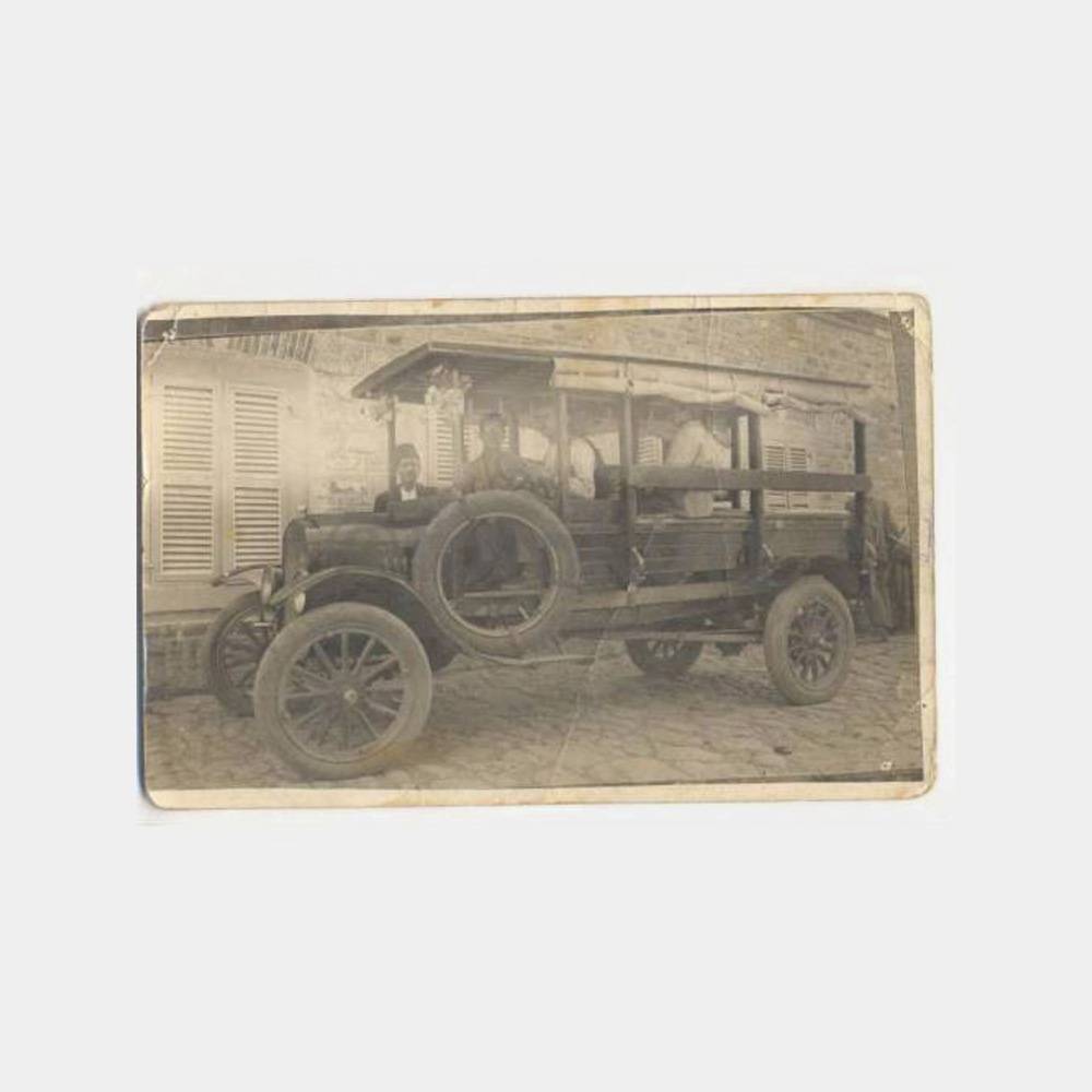 Kasabalar arası yolcu taşımacılığı yapan eski tip otobüs öncülerinden, Aydın ile ilgili albümden. Arkasında eski Türkçe yazısı var. Çok önemli bir belgesel fotoğraf, kondüsyon haliyle.