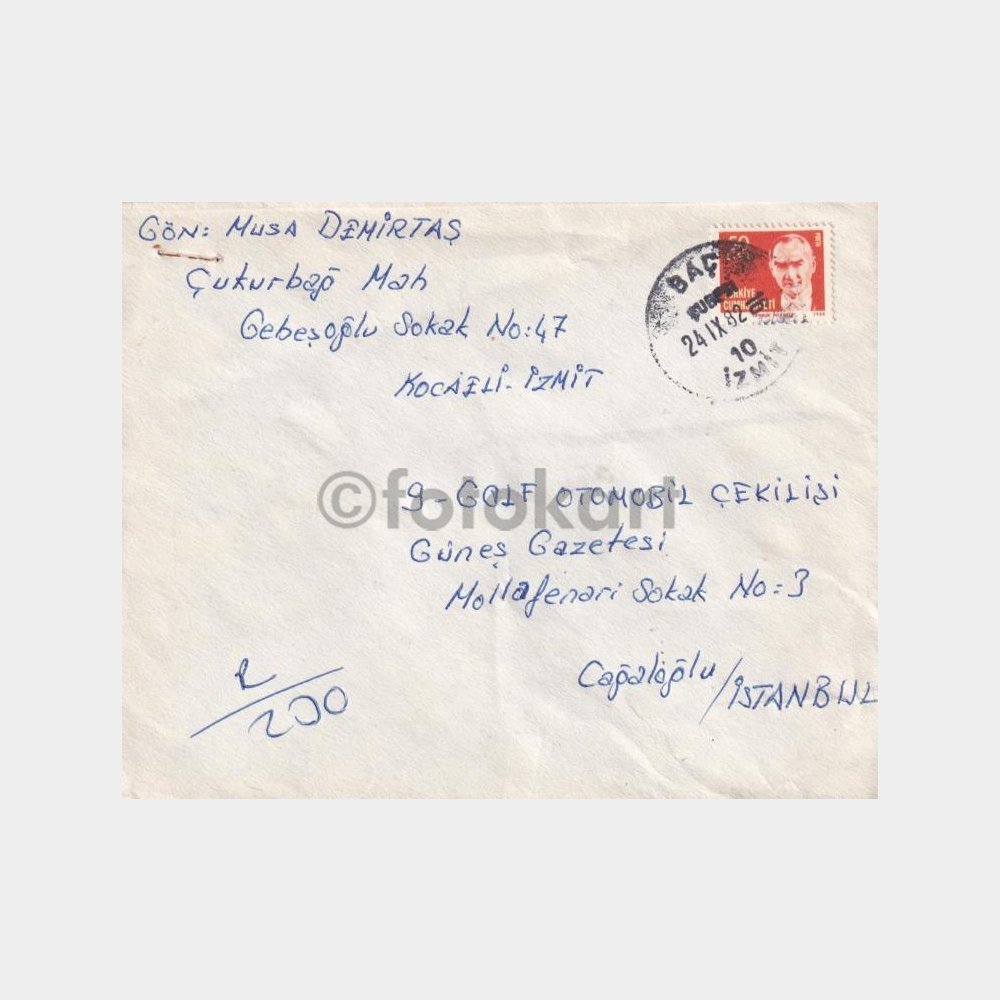 Baç-İzmit, Posta Tarihi-Şehir Damgalı Zarf