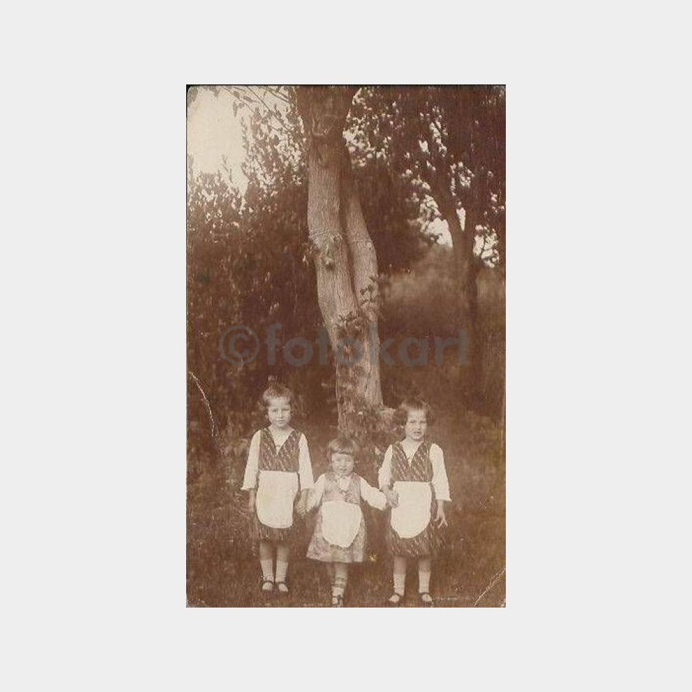 Bahçede Önlüklü Üç Kız Kardeş Fotoğraf