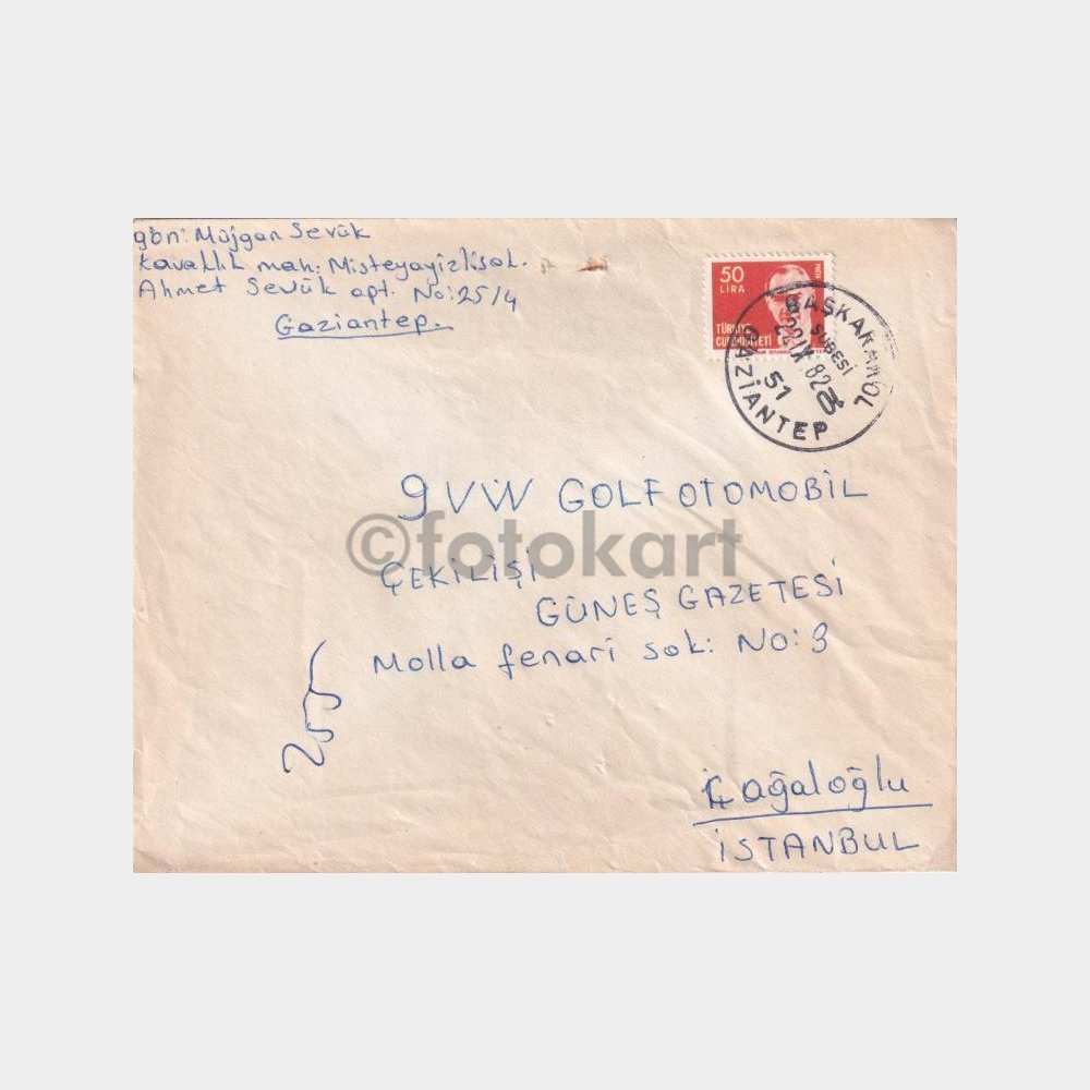 Postadan Geçmiş Pullu Damgalı Zarf-Şehir Damga Koleksiyonu
