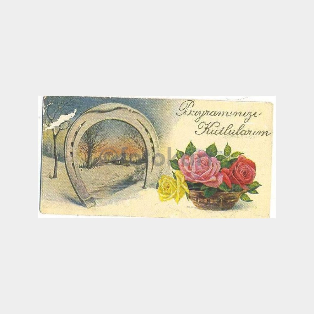Bayramınızı Kutlularım – Eski Çiçekli Tebrik Kartı