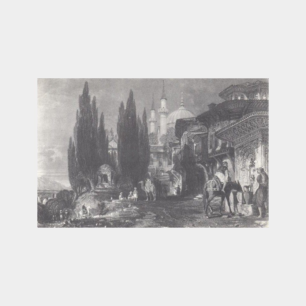 Bursa Karagöz Mezarı Konulu Gravür Tebrik Kartı