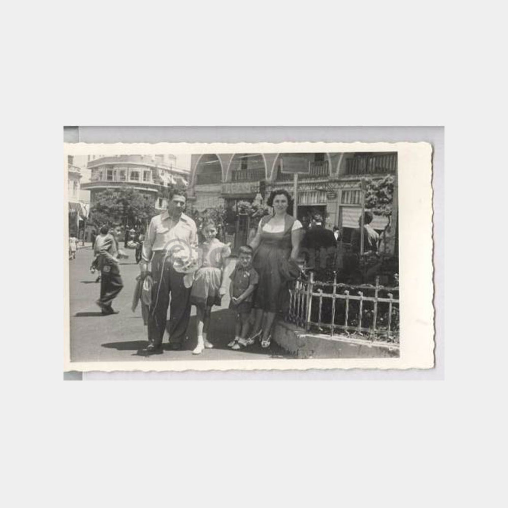 9 x 14 cm ebadında fotoğraf, arka planda Sarandi levhalı bir dükkan ve Kızılay rozeti takan bir çocuk görüntüsü var.