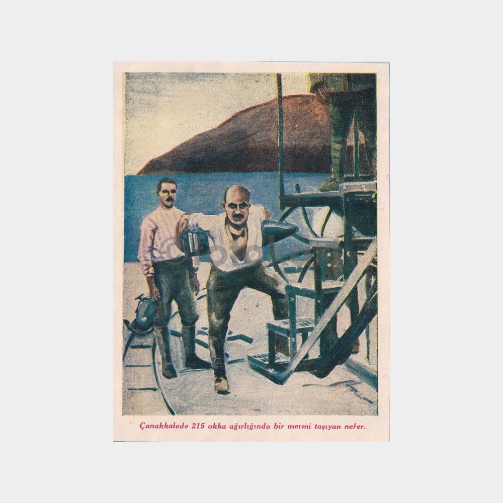 Çanakkale’de 215 Okka Ağırlığında Bir Mermi Taşıyan Nefer – Baskı Resim