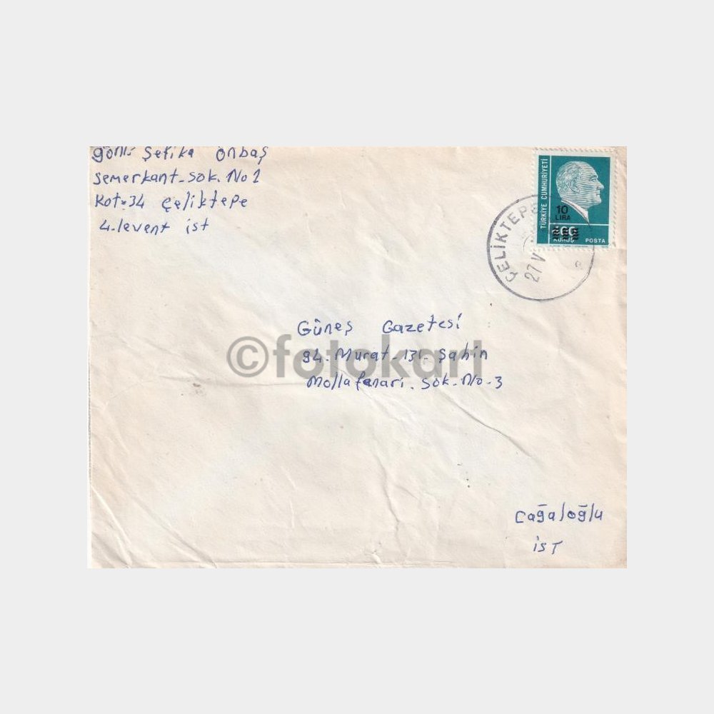Çeliktepe, Posta Tarihi-Şehir Damgalı Zarf
