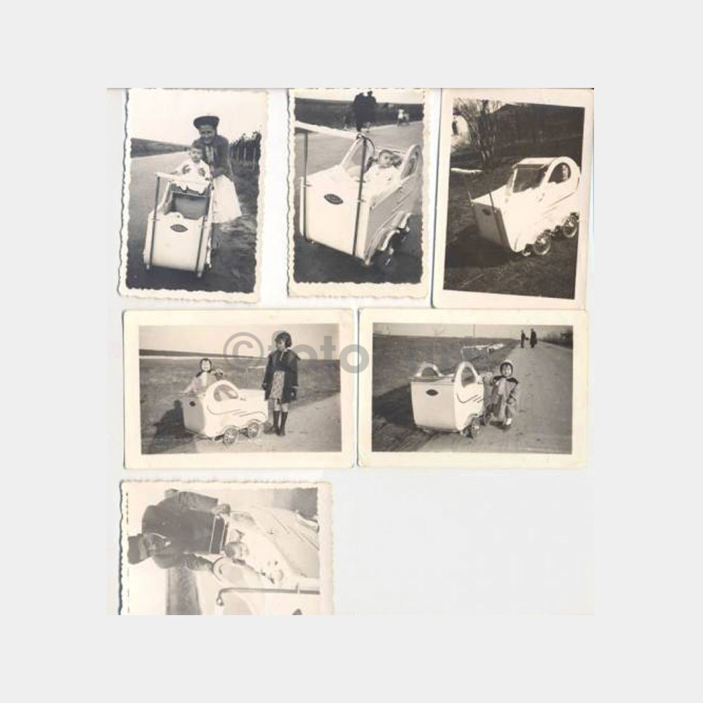 1940’lı yıllar, çocuk arabası konulu. Aynı albümden alınmış. Küçük ebat fotoğraflar 5 adet. Arkası yazısız.