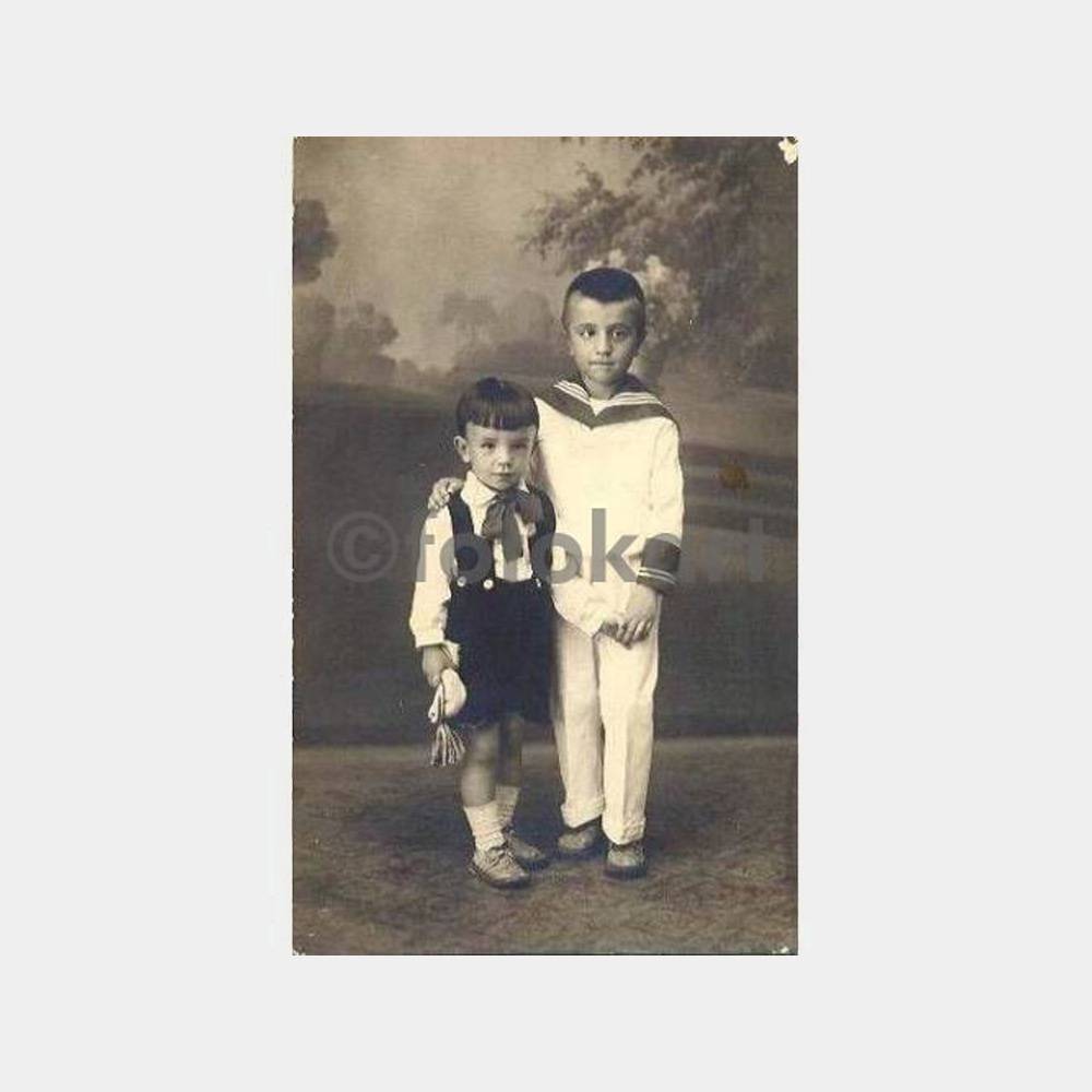 Denizci Kıyafetli Çocuk ve Kardeşi Fotoğraf