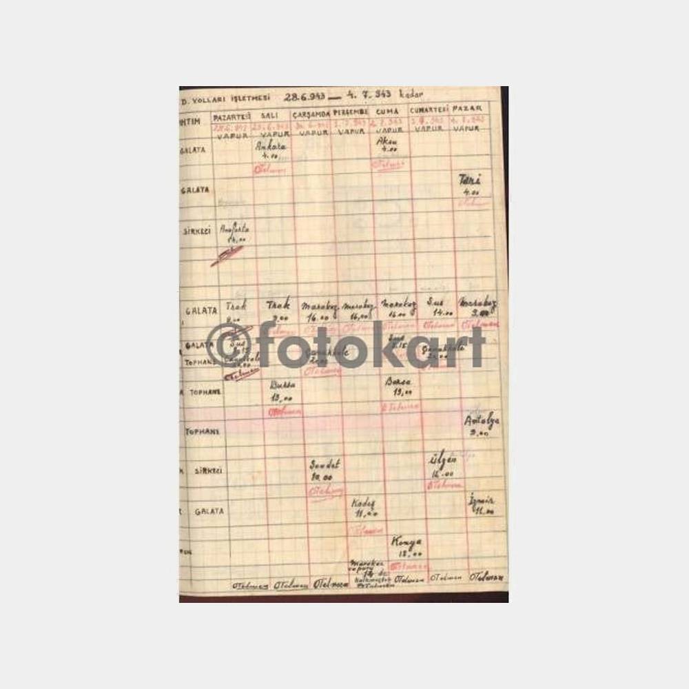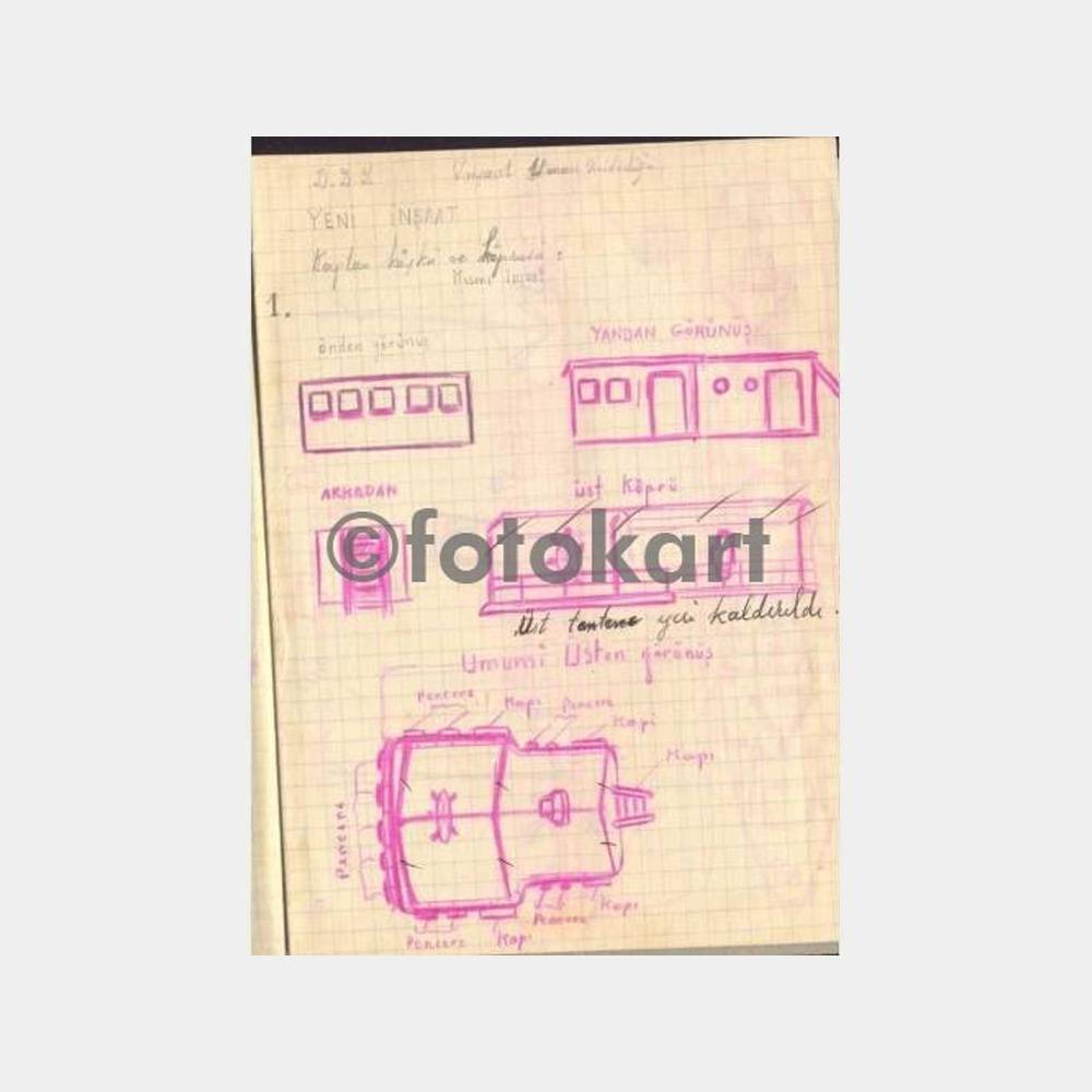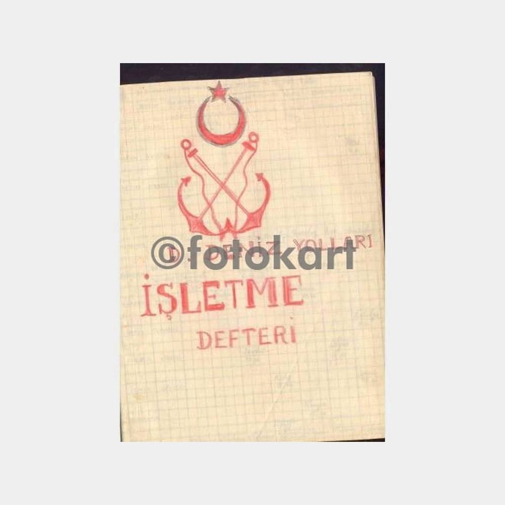 Denizyolları arma baskılı deftere bir denizci tarafından muhtelif çalışmalar yapılmış,