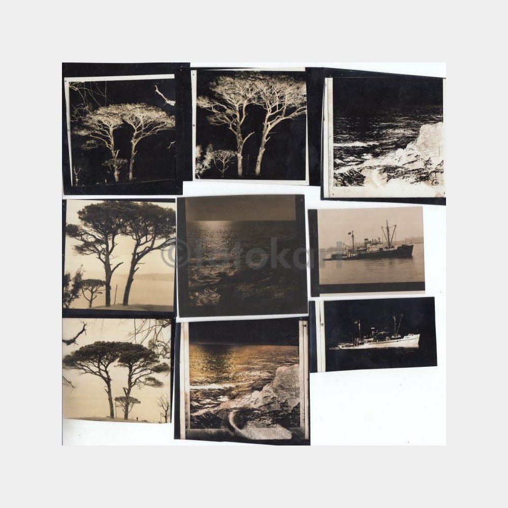 Çoğunluğu 5 x 5 cm ebadında, 9 adet film. 2 adedi gemi konulu.