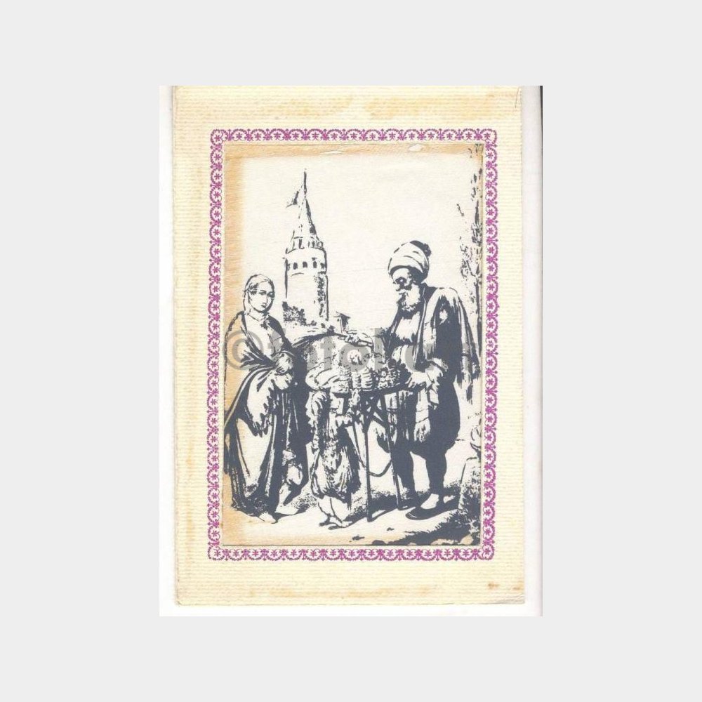 9,5 x 13 cm. İçinde ilaç firma direktörlerine yazılmış not var, eşantiyon gönderme talebi. Ön kapakta eski Osmanlı simitçi gravur kumaş baskı.