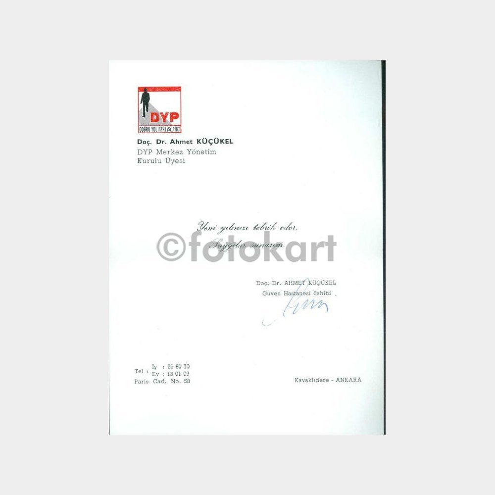 DYP Üyesi Ahmet Küçükel – Tebrik Yazısı